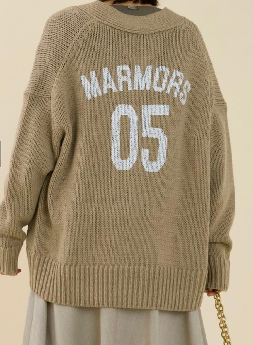 ゆるい編み目に半ラバーのプリントを施すことでプリント面が不均一にひび割れていき、一枚一枚雰囲気が絶妙に異なるカーディガンに仕上げました♪
