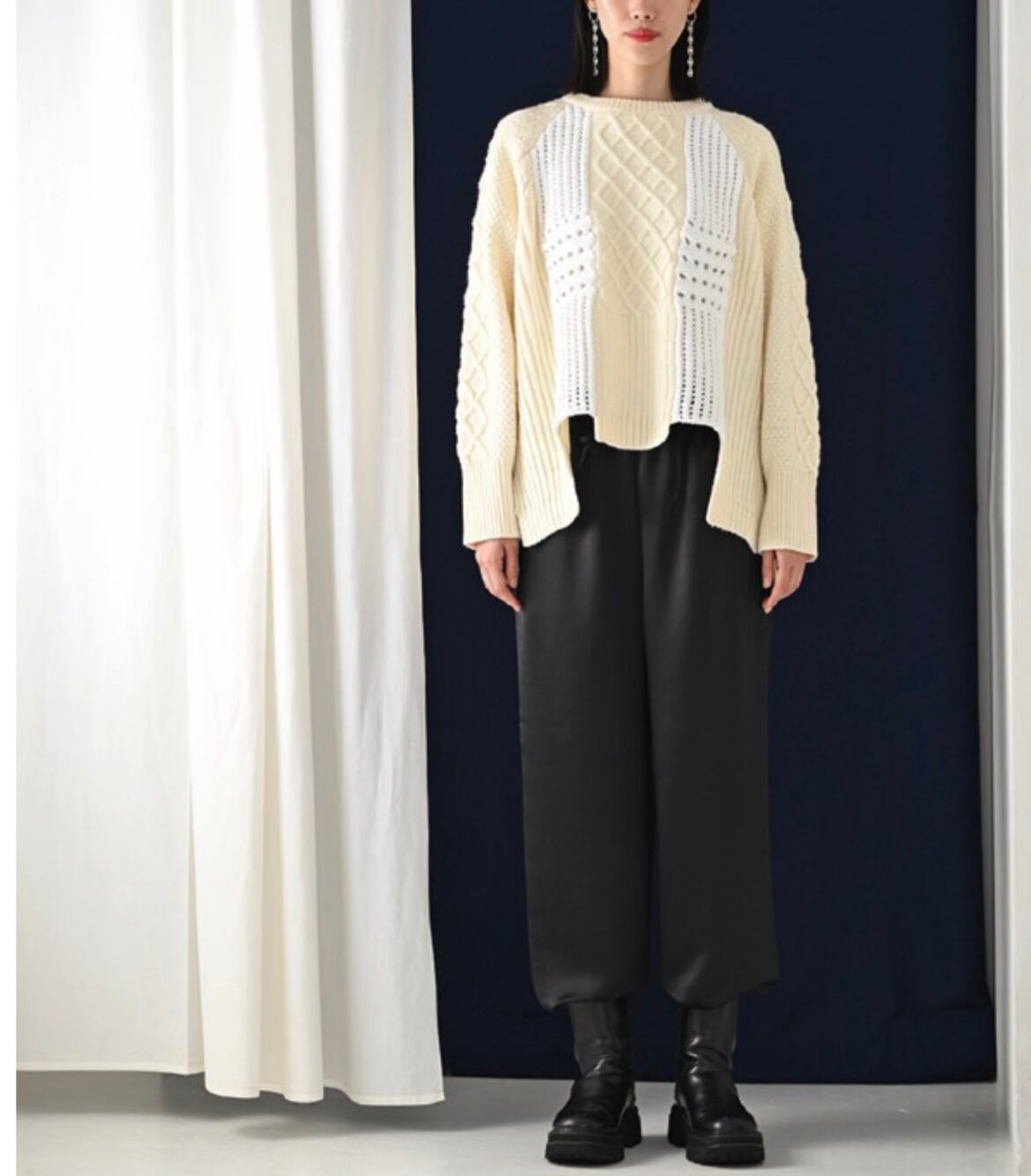 アラン透かし配色ニット 1%【イチパーセント】